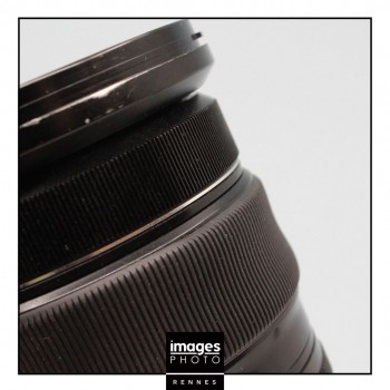 Objectif marqué, traces uniquement esthétiques. Caoutchouc de la bague de zoom un peu distendue.